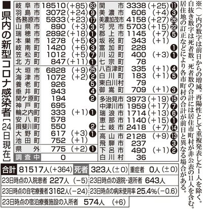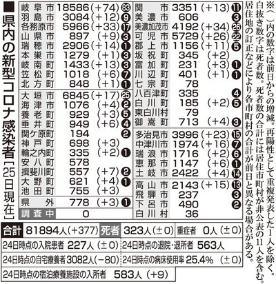 【25日・新型コロナ詳報】高校運動部で23人クラスター、岐阜県で377人感染 岐阜県と岐阜市は25日、県内33市町などで新たに計377人の新型コロナウイルス感染を確認したと発表した。前週の月曜日(18日)と比べて51人多く、4日連続で前の週の同じ曜日を上回った。感染者は累... 2022年4月25日 21:02