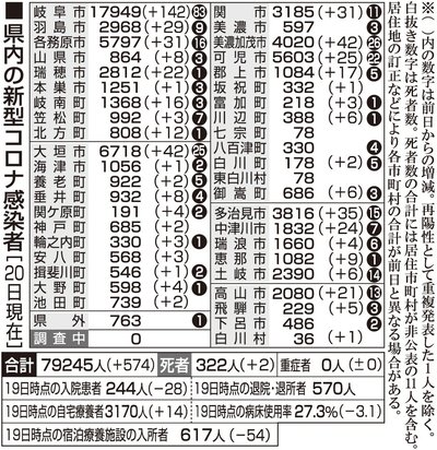 【21日速報】岐阜県内で615人が新型コロナ感染 1人死亡 岐阜県と岐阜市は21日、県内で新たに615人の新型コロナウイルス感染と1人の死亡を確認したと発表した。県内の感染者は計7万9860人、死者は計323人となった。【グラフ】岐阜県の市町村別で見る感... 2022年4月21日 15:01