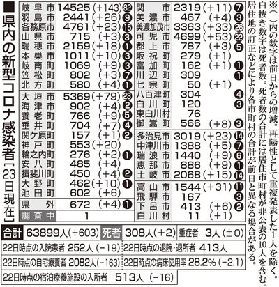【24日速報】岐阜県内で516人が新型コロナ感染 岐阜県と岐阜市は24日、県内で新たに516人の新型コロナウイルス感染を確認したと発表した。県内の感染者は計6万4415人となった。【グラフ】岐阜県の市町村別で見る感染者数はこちら☜【グラフ】入院... 2022年3月24日 15:11