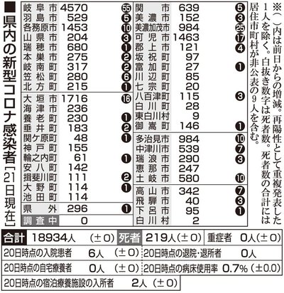【21日・新型コロナ詳報】オミクロン株濃厚接触4人判明 岐阜県3日続けて感染者ゼロ 岐阜県は21日、県内で新型コロナウイルスの新たな感染者が確認されなかったと発表した。1日当たりの感染者がゼロとなるのは3日連続。感染者は累計1万8934人のまま。新規感染者が10人を下回るのは4... 2021年12月21日 18:34