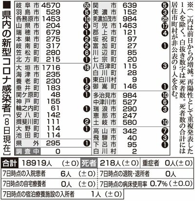 【9日速報】岐阜県内で2人が新型コロナ感染 岐阜県と岐阜市は9日、県内で新たに2人の新型コロナウイルス感染を確認したと発表した。県内の感染者は計1万8921人となった。【グラフ】ワクチン接種率の最新データ(全国、岐阜)【グラフ】岐阜県の市... 2021年12月9日 15:08