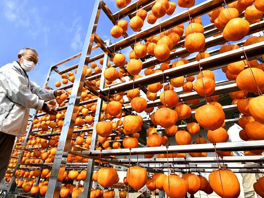 堂上蜂屋柿「ようかん並み」甘さ 美濃加茂市で生産ピーク 岐阜県美濃加茂市特産の高級干し柿「堂上蜂屋柿」の生産が最盛期を迎えた。ようかん並みの高い糖度で知られ、長い歴史を持つ堂上蜂屋柿。今年は近年にないほどの豊作という。 2021年11月26日 17:59