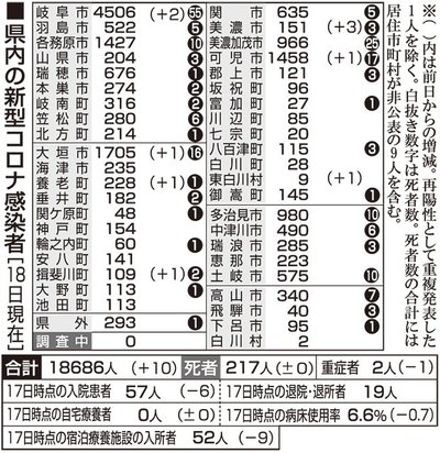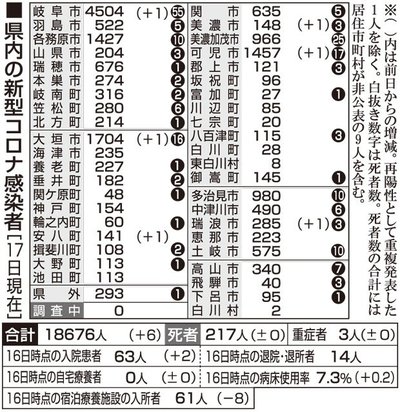 【18日・新型コロナ詳報】クラスターで高校教員が陽性、生徒にも拡大 岐阜県で10人感染 岐阜県と岐阜市は18日、県内7市町村で計10人の新型コロナウイルス感染を確認したと発表した。7日連続で前の週の同じ曜日の新規感染者を下回った。17日時点の入院患者は57人となり、60人を7月15... 2021年10月18日 19:52