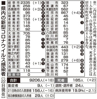 【23日速報】岐阜県で11人が新型コロナ感染 岐阜県と岐阜市は23日、県内で新たに11人の新型コロナウイルス感染を確認したと発表した。県内の感染者は計9217人となった。【詳報】10歳未満~80代の11人感染確認、岐阜県入院患者は150人【... 2021年6月23日 15:17