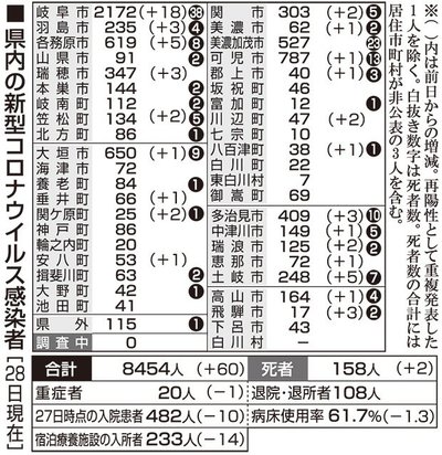 【29日岐阜・コロナ速報】63人が新たに感染 岐阜県と岐阜市は29日、県内で63人の新型コロナウイルス感染と3人の死亡を確認したと発表した。県内の感染者は計8517人、死者は計161人となった。【詳報】時短要請に応じなかった飲食店、高校など... 2021年5月29日 15:26