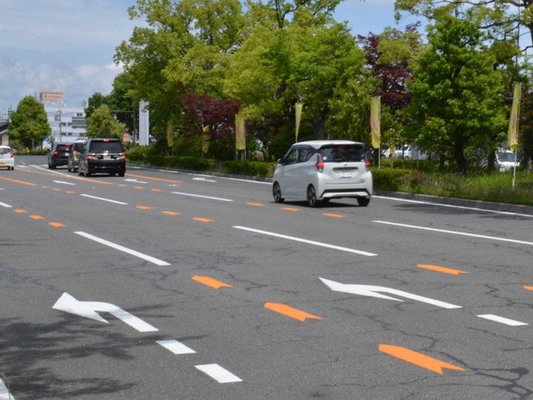あおり運転防止へ「もうすぐ進路変更禁止区間」路面表示 黄色の矢羽根型、全国に先駆け本格運用 「この先は進路変更禁止区間」と注意喚起する新たな路面表示が、岐阜市薮田南の県庁前交差点南側の道路にペイントされ、全国に先駆けて本格運用されている。禁止区間に入ってから走行車線を変える違反を防ぐこ... 2021年5月15日 09:19