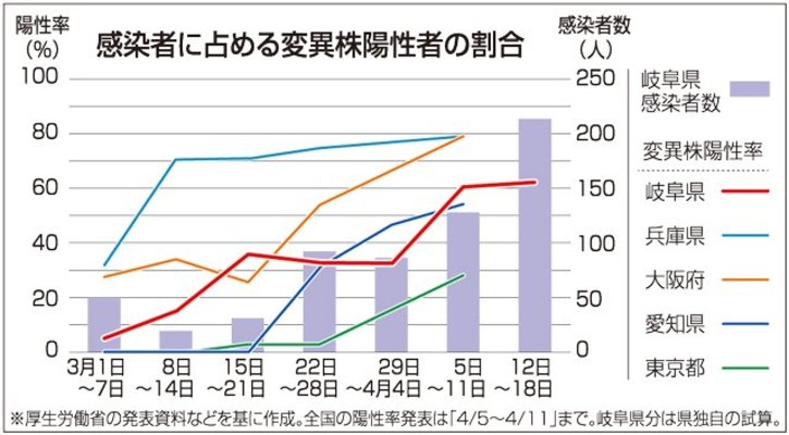 【25日速報】岐阜県内で40人が新型コロナ感染 岐阜県と岐阜市は25日、県内で40人の新型コロナウイルス感染と2人の変異株陽性を確認したと発表した。県内の感染者数は計5512人、変異株陽性者数は計136人となった。 2021年4月25日 15:11