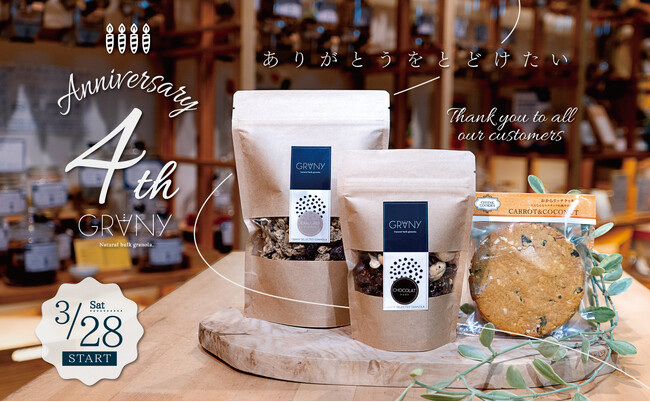 【GRANY 栄マルエイガレリア店 】『ありがとう』を届けたい。今年も「4周年祭」開催! 社会福祉法人tomoni plus自然派グラノーラ専門バルクショップ【GRANY(グラニー)栄マルエイガレリア店】が4周年祭を開催。 ガラポン抽選会や限定商品、新商品『Mogu』の先行販売も行い... 2026年3月24日 09:50