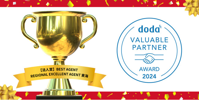 【2年連続】パーソルキャリア主催「doda Valuable Partner Award 2024」にて「REGIONAL EXCELLENT AGENT 東海」「法人賞 BEST AGENT」を受賞 2025年3月12日 10:00