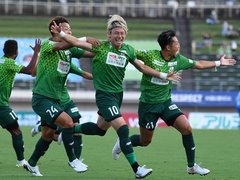 讃岐×FC岐阜=後半、シュートを放つ岐阜の川西=Pikaraスタジアム