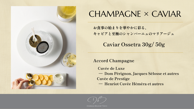 「ドミニク・ブシェ トーキョー」オリジナルラベル “キャビア・オシェトラ” × シャンパーニュ セットプラン登場