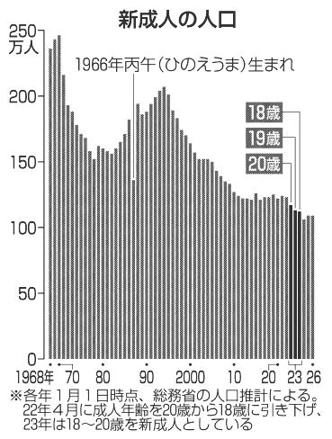 18歳新成人109万人 人口推計 過去2番目の少なさ