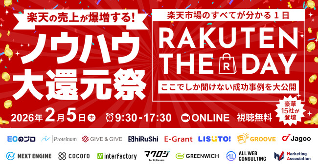 【EC事業者向け】オンラインカンファレンス「楽天市場のすべてが分かる1日 RAKUTEN THE DAY 2026 ~日本中が楽天に染まる日-ここでしか聞けない成功事例を大公開~」を2月5日に開催 2026年1月22日 12:00岐阜