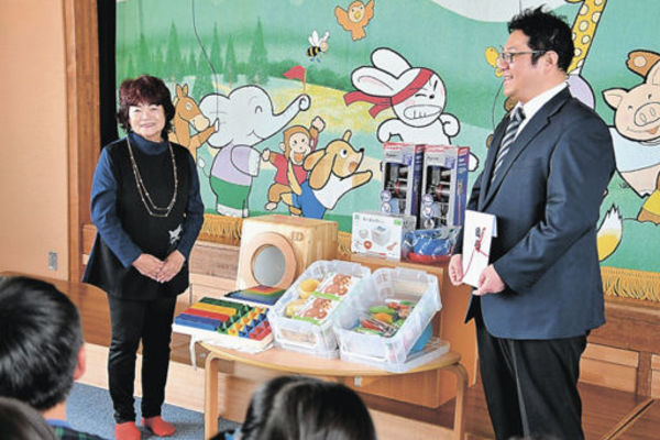 羽島のこども園におもちゃ6点寄贈 辰己製作所、大垣西濃信金