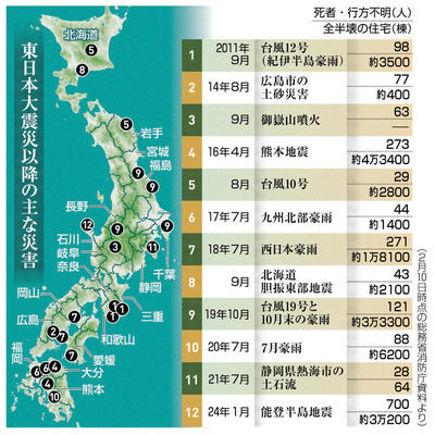 東日本大震災15年 日本列島相次ぐ災害 西日本豪雨、能登地震…多くの犠牲者 未曽有の被害をもたらした東日本大震災から15年となった。日本列島では豪雨や地震が相次ぎ、多くの犠牲者が出た。国や自治体は震災を教訓にハード、ソフト両面で対策を進め、南海トラフ、首都直下の両巨大地... 2026年3月11日 05:00岐阜