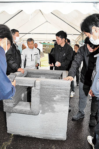 3Dプリンター製の構造物 ニシノ、県内で初施工