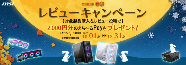 MSI、「レビューキャンペーン秋冬2025」を開催! 対象の商品を購入後、指定サイトにてレビューを投稿したお客様全員に1製品ごとに2,000円分のえらべるPayをプレゼント! 2025年10月1日 00:00岐阜