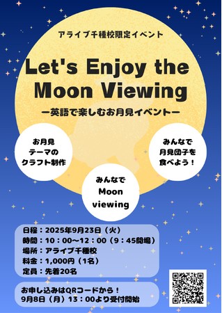 秋の特別イベント!9/23開催『Let’s Enjoy the Moon Viewing ‐英語で楽しむお月見イベント‐』【愛知県名古屋市:アライブイングリッシュスクール千種校主催】 2025年9月11日 19:30岐阜