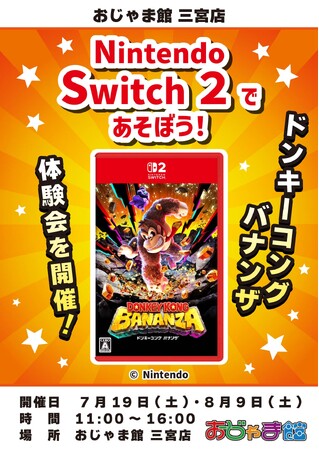 【Nintendo Switch(TM) 2】注目の新作ゲーム「ドンキーコング バナンザ」のゲーム体験会を「おじゃま館 三宮店」「おじゃま館 イオンモール東員店」にて開催〈7月19日・8月9日・8月20日〉 2025年7月18日 10:00岐阜