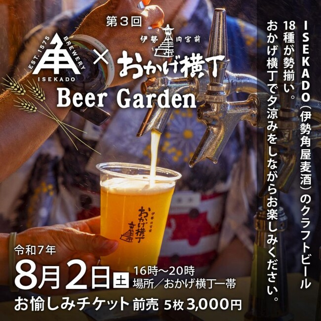 【奉祝 風日祈祭】伊勢の夏、五穀への祈りをクラフトビールで祝う~第3回 ISEKADO × おかげ横丁 Beer Garden|8月2日(土)開催~ 有限会社二軒茶屋餅角屋本店クラフトビールブランド「ISEKADO」(有限会社二軒茶屋餅角屋本店、三重県伊勢市)は、2025年8月2日(土)、伊勢・おかげ横丁にて「第3回 ISEKADO × おか... 2025年7月10日 10:00岐阜