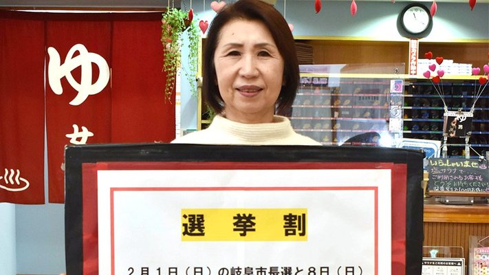 温浴施設で選挙割 岐阜ふじの湯、衆院選や岐阜市長選対象 8日投開票の衆院選に合わせ、岐阜市正木の温浴施設アクアリゾート岐阜ふじの湯では「選挙割」を行っている。投票済証明書を 提示すると、入浴料が100円引きされる。10日まで。政治参加のきっ... 2026年2月4日 08:48