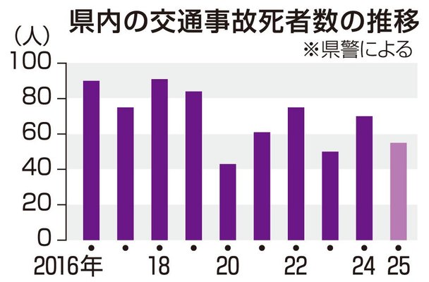 飲酒絡む悪質事故が増加 2025年、岐阜県内の交通事故死者55人 岐阜県警は7日、2025年の県内の交通事故発生状況をまとめ、死者数が前年比15人減の55人となり、現行の統計制度を開始した1948年以降で3番目に少なかったと発表した。一方で65歳以上の高齢者が... 2026年1月8日 08:00