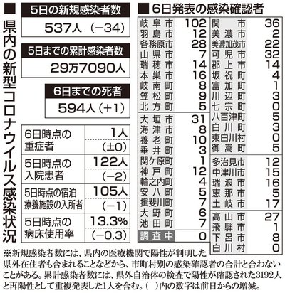 【15日速報】岐阜県内760人が新型コロナ感染、死者は1人 厚生労働省は15日、岐阜県内で新たに760人の新型コロナウイルス感染を確認したと発表した。県内の感染者は計30万2286人となった。死者は1人で、累計の死者数は603人。■【グラフ】市町村別の感... 2022年10月15日 16:04