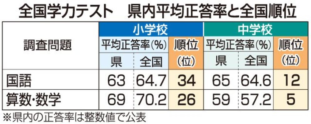 全国学力テスト 岐阜県の中学校は数学5位 小学校は全国平均下回る 文部科学省は31日、小学6年生と中学3年生を対象に実施した2021年度の「全国学力・学習状況調査」(全国学力テスト)の結果を公表した。岐阜県内の小学校の国語と算数は全国の平均正答率を下回ったが、... 2021年8月31日 18:51