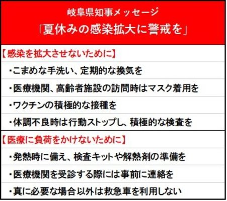 新型コロナ感染「拡大傾向が続いている」 入院患者数、5類移行後最多 岐阜県が適切な感染対策呼びかけ 岐阜県は27日、新型コロナウイルスの感染状況について「拡大傾向が続いている」との見方を示し「できる範囲で場面に応じた適切な感染対策を」と呼びかけた。県医師会のリアルタイム感染症サーベイランスシス... 2023年7月27日 19:04