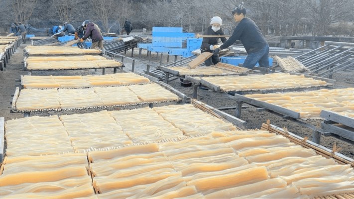 細寒天づくり最盛期 特産地の恵那市山岡町、早朝に「天出し」作業 1年で最も寒さが厳しいとされる20日の大寒を前に恵那市山岡町では、全国シェアの約8割を占める特産の細寒天づくりが最盛期を迎えている。山サ寒天産業では19日早朝、従業員たちが白い息を吐きながら、生... 2026年1月19日 16:20