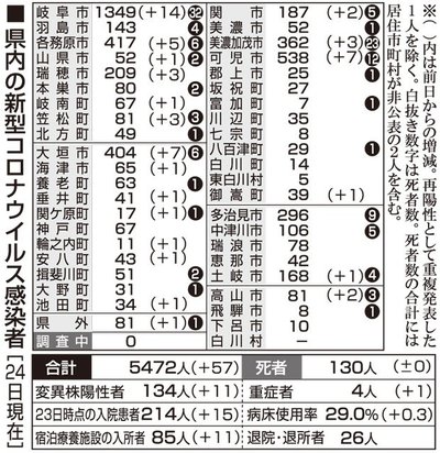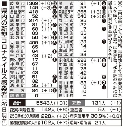 岐阜県内で56人新型コロナ感染 接待を伴う飲食店でクラスター2件 岐阜県と岐阜市は28日、県内18市町で計56人の新型コロナウイルス感染を確認したと発表した。前の週の同じ曜日を上回るのは5日連続で、新規感染者数が2日連続で50人を超えるのは1月21日以来。岐阜... 2021年4月28日 21:36
