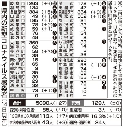 新型コロナ変異株は最多14人 岐阜県内で34人が感染 岐阜県と岐阜市は15日、新たに15市町で計34人の新型コロナウイルス感染を確認したと発表した。新規感染者が20人を超えるのは3日連続。新たに3件のクラスター(感染者集団)を確認したほか、1日当た... 2021年4月15日 20:19