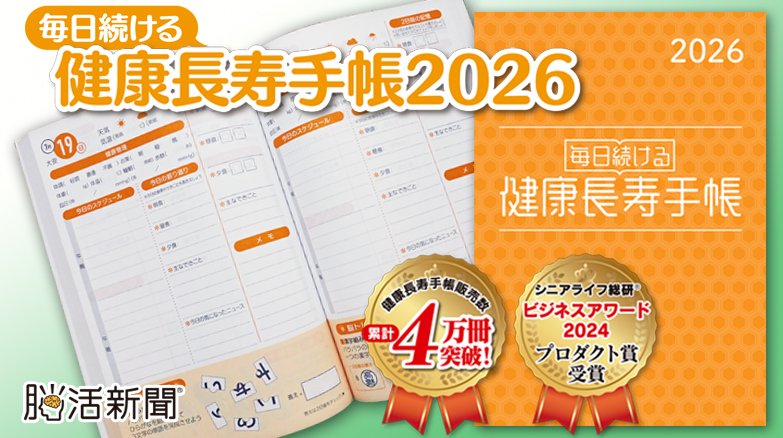 「毎日続ける健康長寿手帳2026」は、毎日のスケジュールや出来事を書く記憶力の訓練とともに、優しいパズルなどで日々脳トレができる大学ノートサイズの手帳です。脳活の面から健康長寿にアプローチ! お手元に置いてご活用ください。