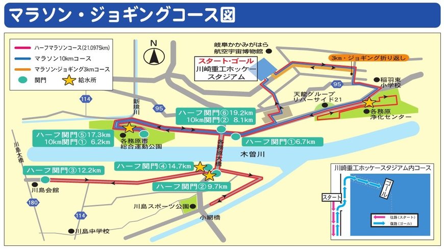 「第30回記念 かかみがはらシティマラソン2023」を川崎重工ホッケースタジアムを発着点に開催します。