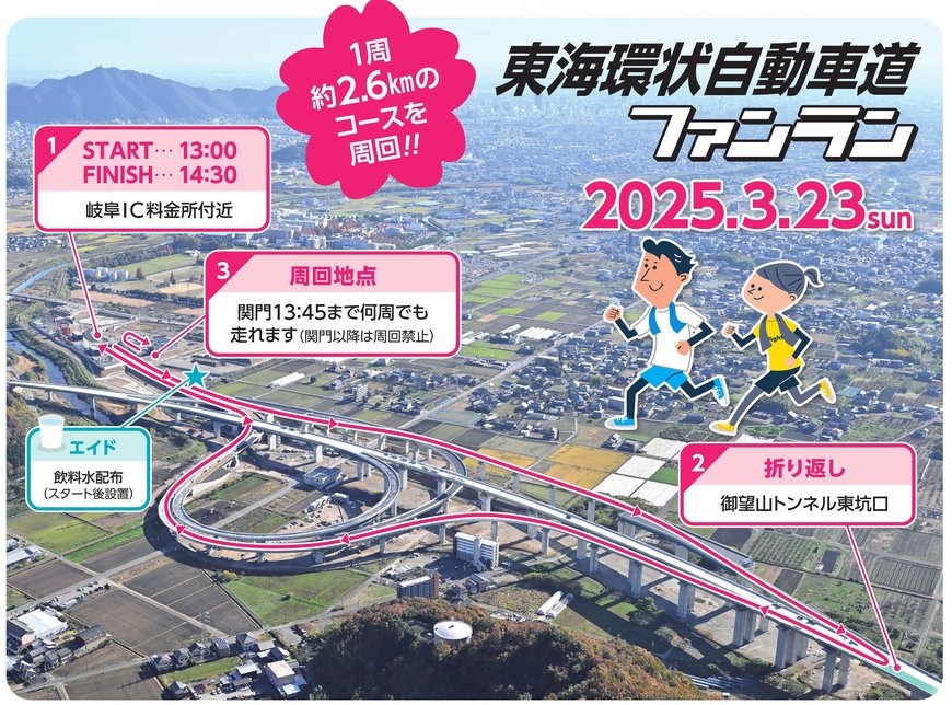 4月6日に開通する東海環状自動車道、岐阜ICにあわせ「東海環状自動車道ファンラン」を開催します。高速道路上を走ることが出来るのはこのイベント1日限り。