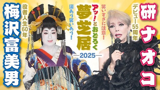 役者人生60年・梅沢富美男 デビュー55周年・研ナオコ アッ!とおどろく『夢芝居』 を2025年7月9日(水)、ぎふしんフォーラム(岐阜市民会館)で開催します。
