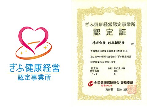 岐阜新聞社は、社是である「岐阜を愛し、人を愛し、仕事を愛する」を体現、「健康経営」を推進します。