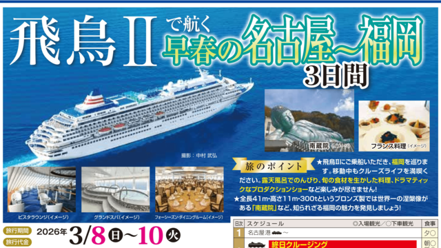 飛鳥Ⅱで航く 早春の名古屋~福岡<3日間>