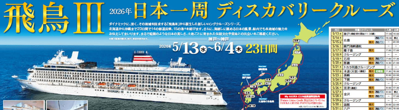 飛鳥Ⅲ 2026年日本一周ディスカバリークルーズ <23日間>